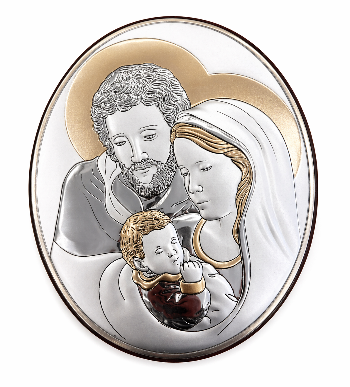 Εικόνα Αγία Οικογένεια οβάλ δίχρωμη απο ασήμι 925° και ξύλο μασίφ καφέ