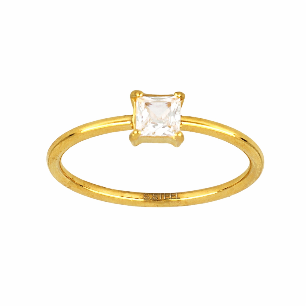 Δαχτυλίδι απο ανοξείδωτο ατσάλι Prince Cut με ζιργκόν σε χρυσή απόχρωση