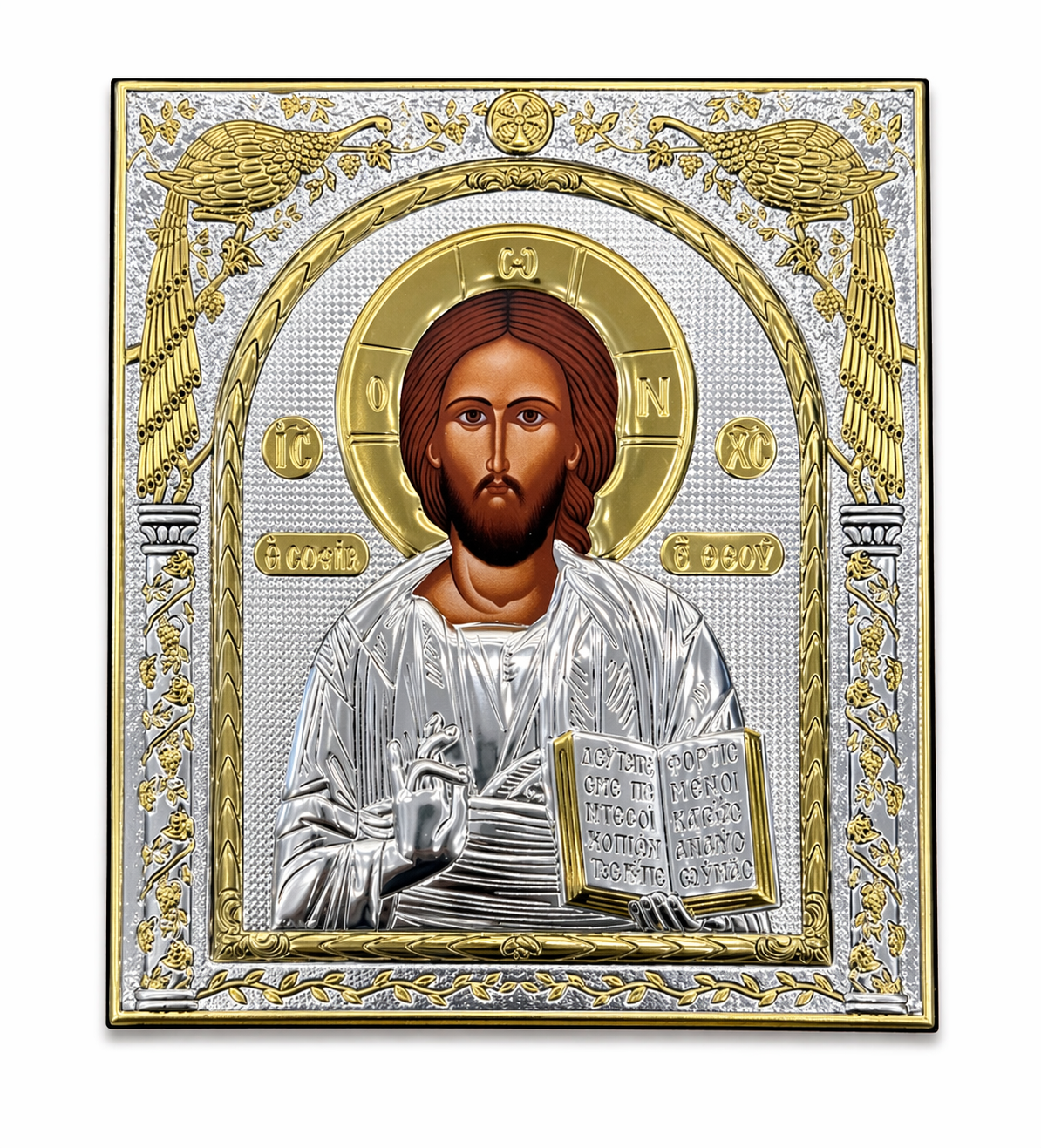 Εικόνα Ιησούς Χριστός τετράγωνη δίχρωμη απο ασήμι 925° και ξύλο μασίφ καφέ