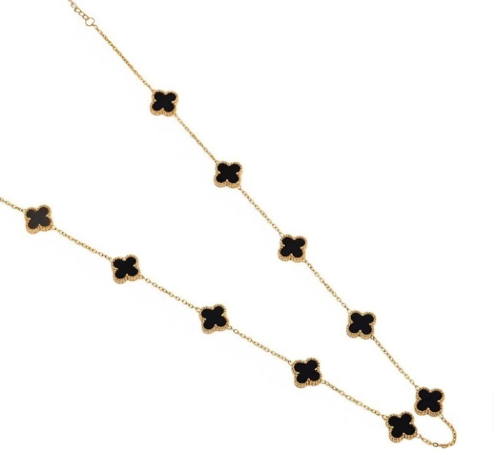 Κολιέ Clover με μαύρο σμάλτο απο ανοξείδωτο ατσάλι χρυσής απόχρωσης