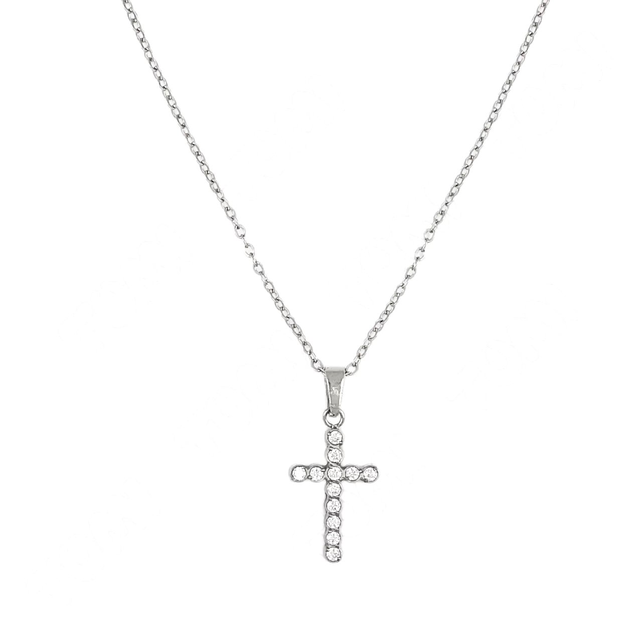 Κολιέ Σταυρός pavé απο ανοξείδωτο ατσάλι με λευκά ζιργκόν σε λευκή απόχρωση και καδένα με επέκταση