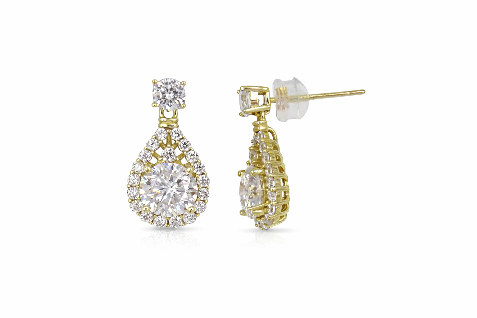 Σκουλαρίκια ροζέτα σε σχήμα Δάκρυ από ασήμι 925°, με μοϊσανίτη Brilliant Cut 2.0 ct, ποιότητας VVS1, χρώματος D με πιστοποίηση GRA
