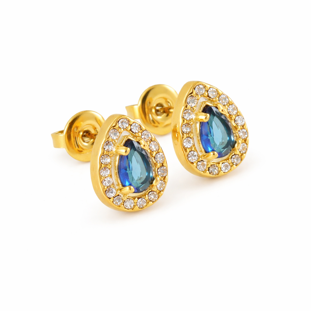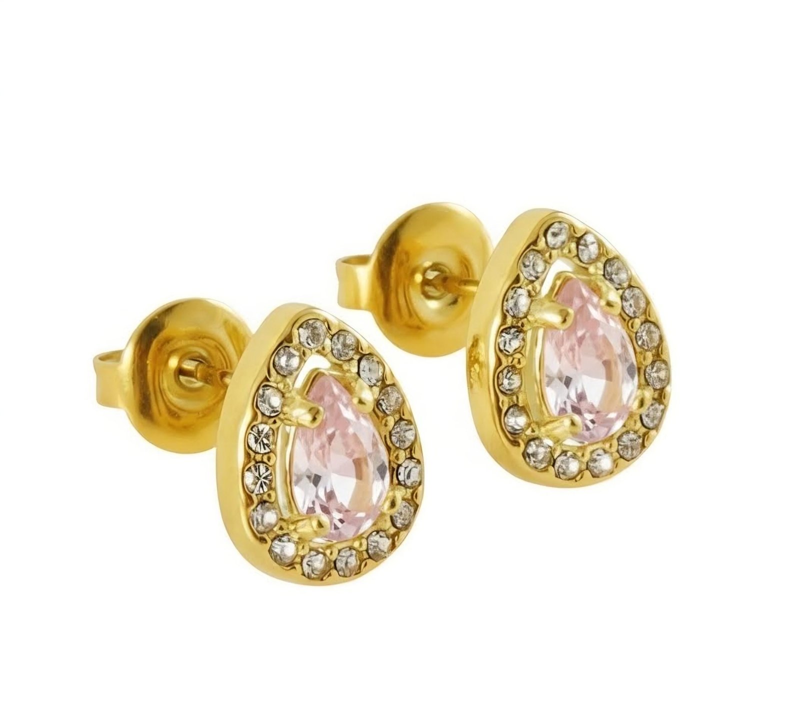Σκουλαρίκια ροζέτα απο ανοξείδωτο ατσάλι Pear Cut με ζιργκόν χρυσής απόχρωσης