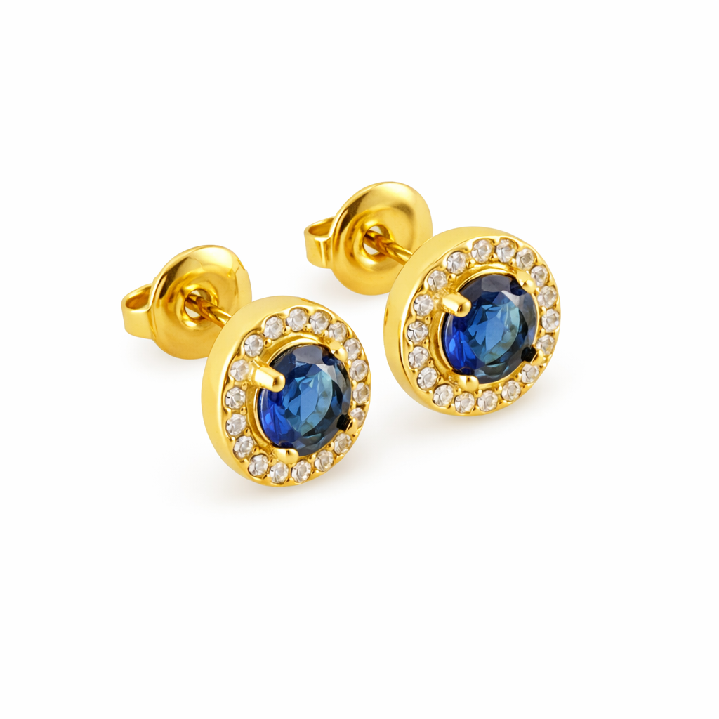 Σκουλαρίκια ροζέτα απο ανοξείδωτο ατσάλι Brilliant cut με ζιργκόν σε χρυσής απόχρωσης