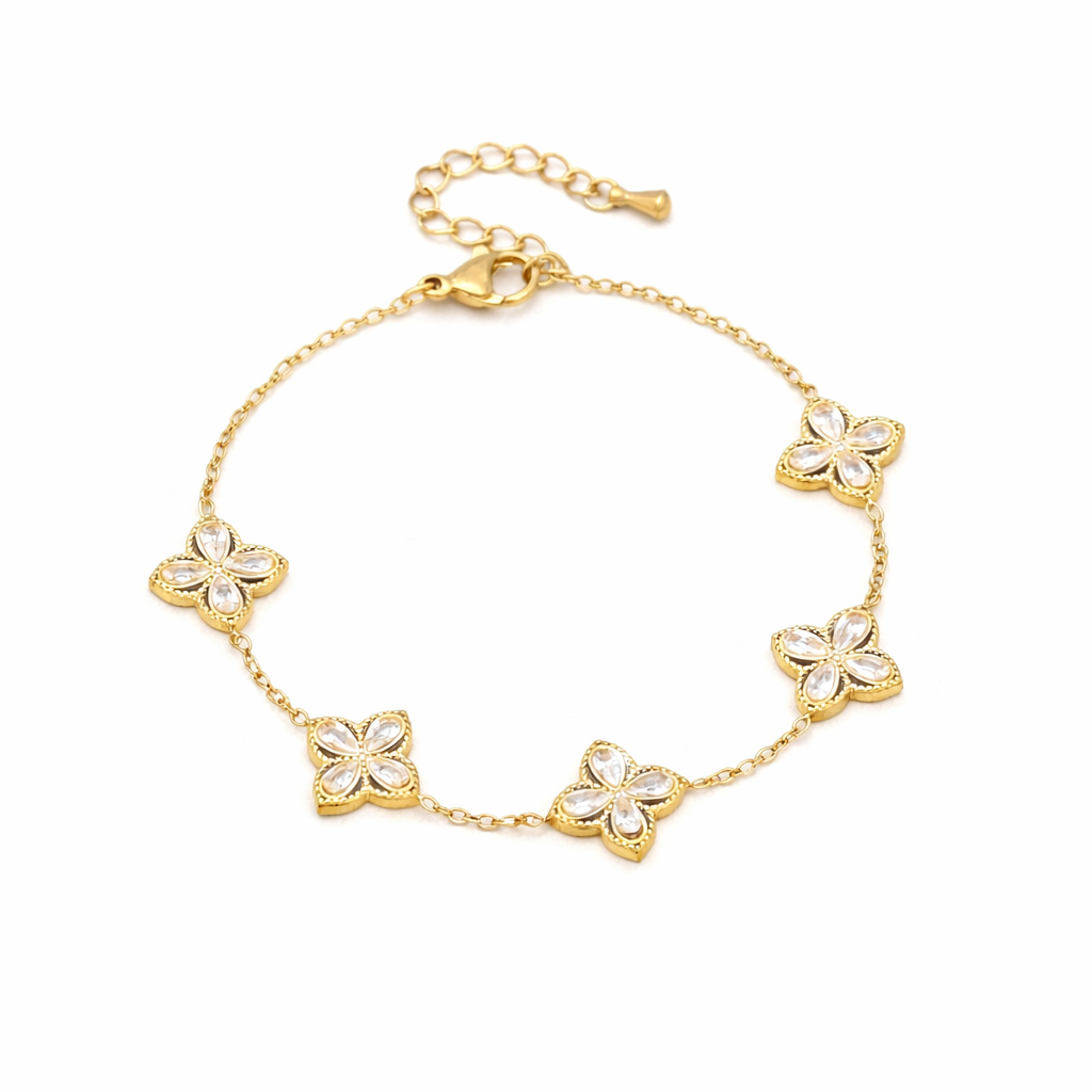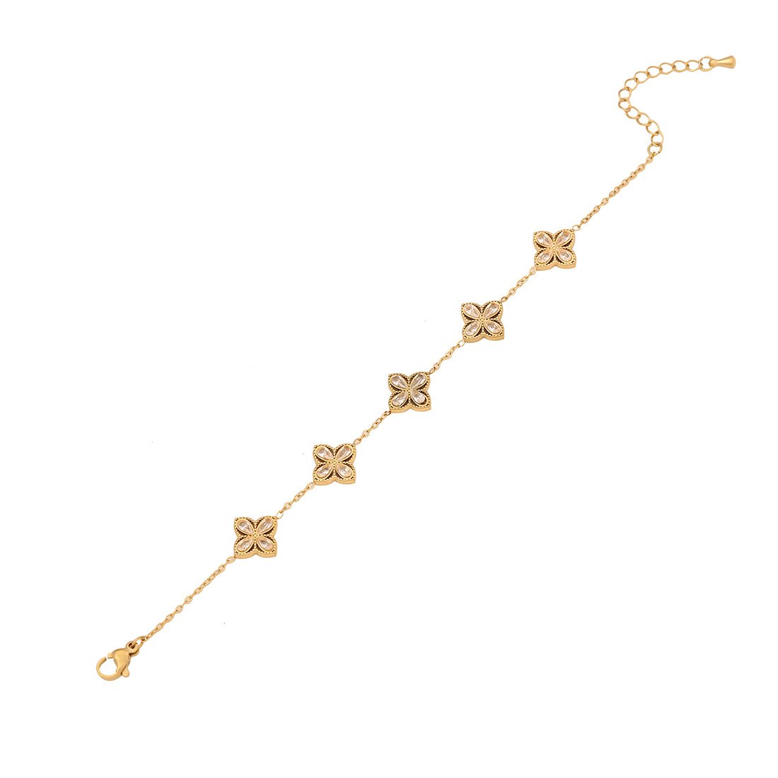 Βραχιόλι χεριού Clover από ανοξείδωτο ατσάλι και πέτρες ζιργκόν σε χρυσή απόχρωση