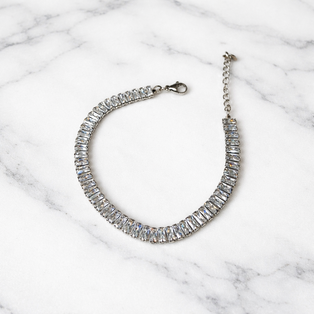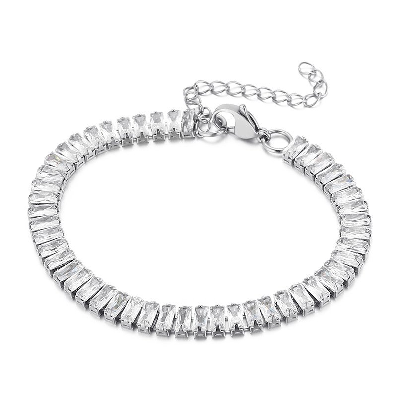 Βραχιόλι χεριού ριβιέρα Baguette Cut από ανοξείδωτο ατσάλι ασημένιας απόχρωσης